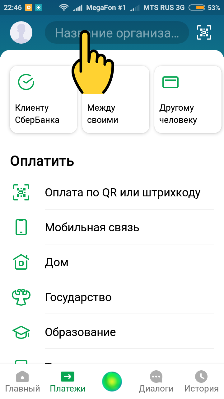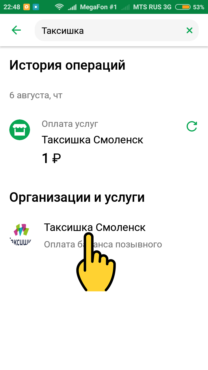 Далее зайдите в раздел платежи и в строке поиска органзаций напишите "Таксишка".
