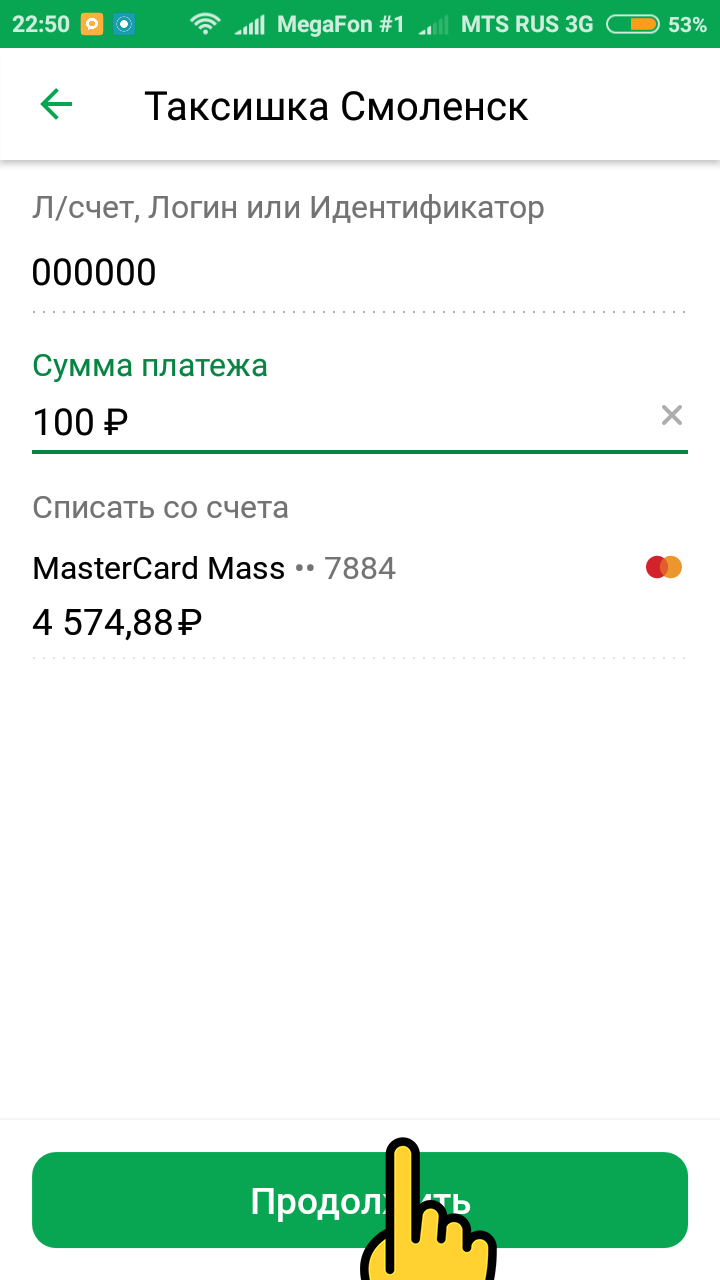 На следующей странице введите сумму платежа и снова жмите кнопку "Продолжить":
