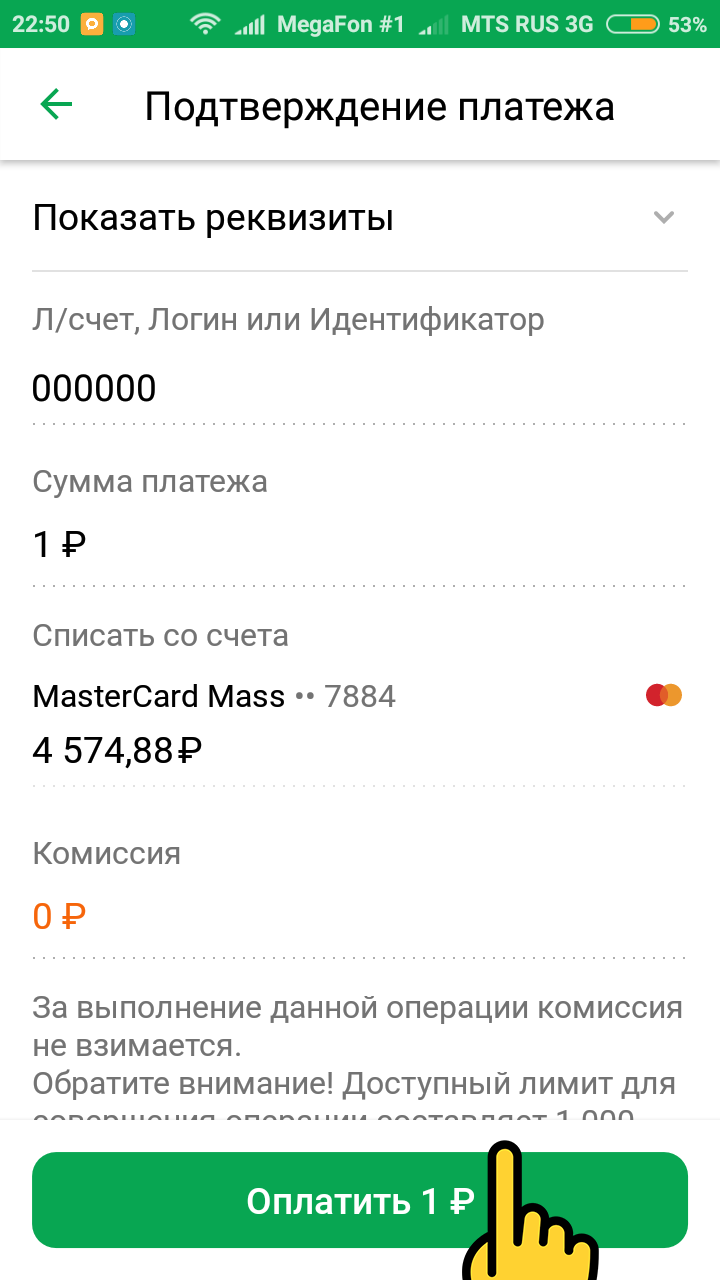 4. Теперь внимательно проверьте все данные и подтвержите платёж нажав кнопку "Оплатить":