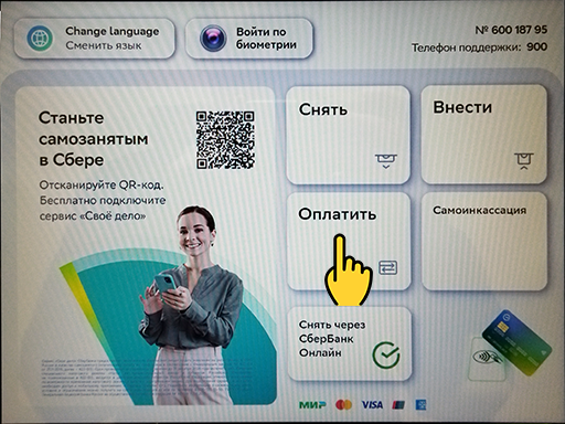 1. На банкомате нажмите кнопку "Оплатить".