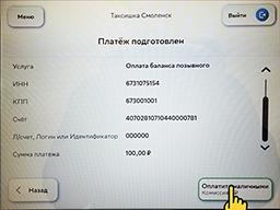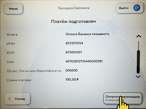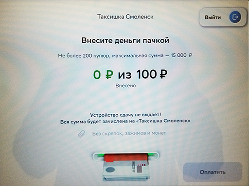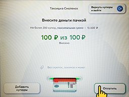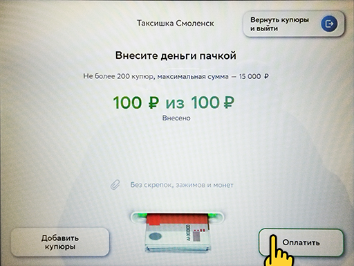 6. Теперь вносим наличные и нажимаем кнопку "Оплатить".
