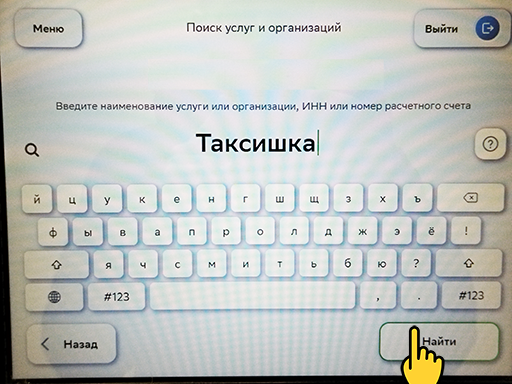 2. В поле "Поиск организации", напишите слово "Таксишка" и нажмите "Поиск".