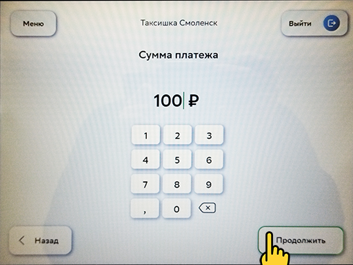 4. На данной странице введите сумму платежа и снова жмите кнопку "Продолжить":