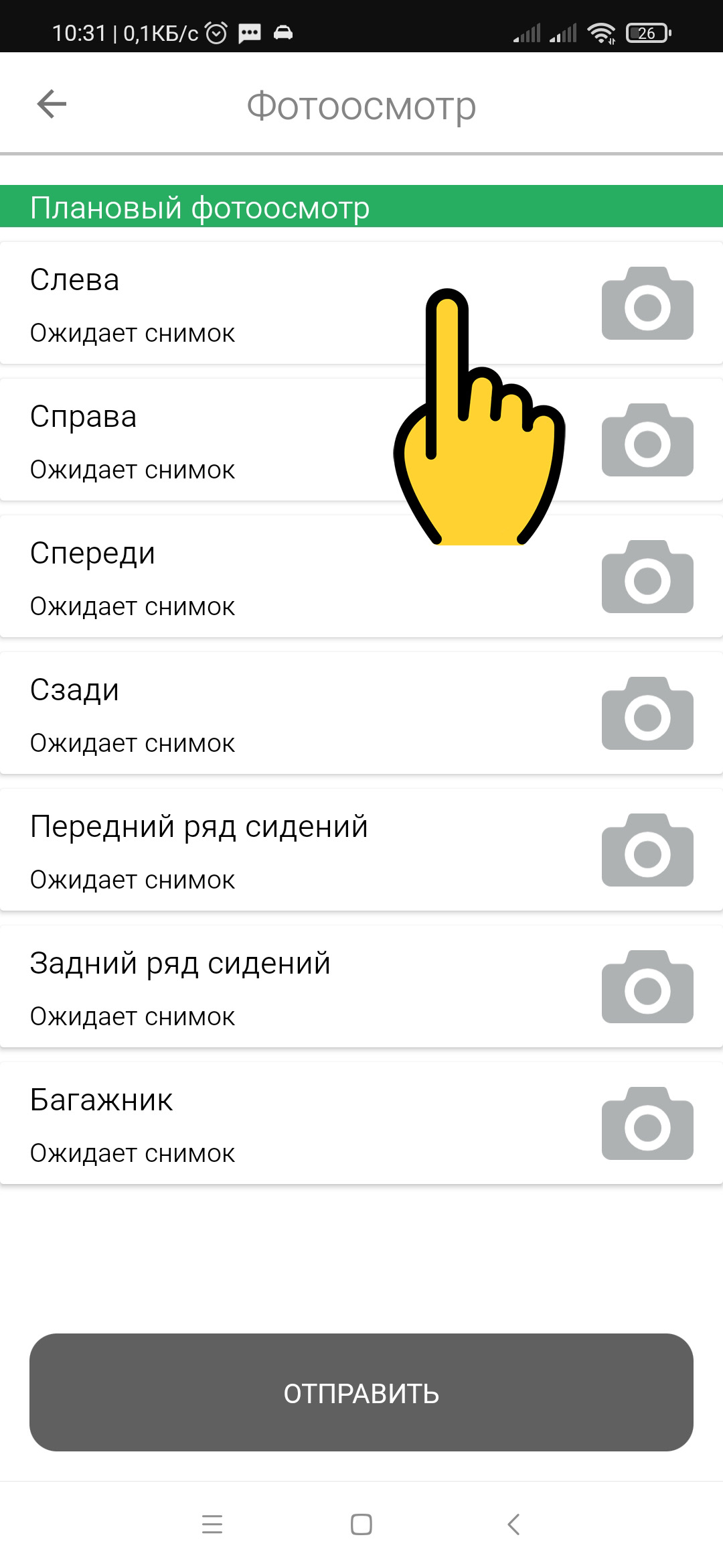 2. В новом окне появиться список ракурсов в которых нужно сфотографировать автомобиль.