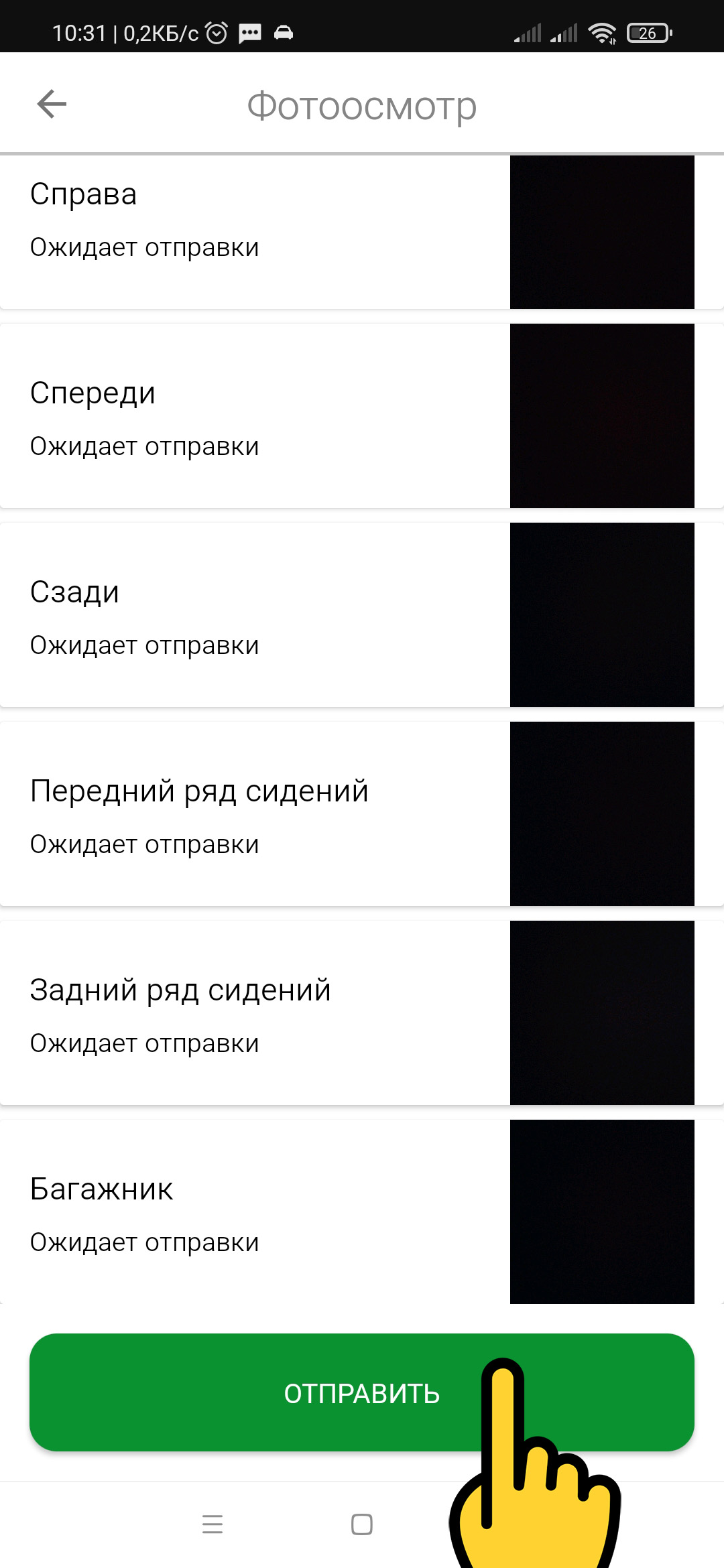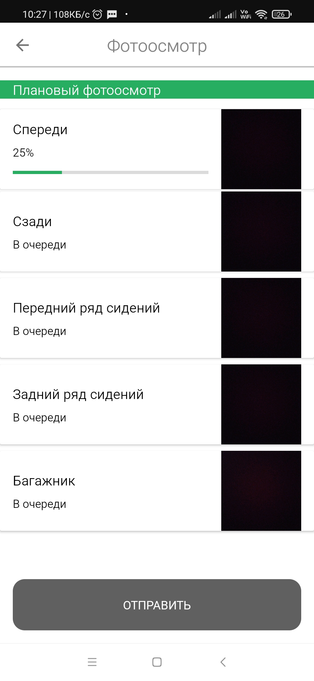 3. После завершения фотографий станет активной кнопка "Отправить". Нажмите на неё и дождитесь окончания отправки фото на сервер. После чего фотосмотр будет завершен и можно продолжить работу.