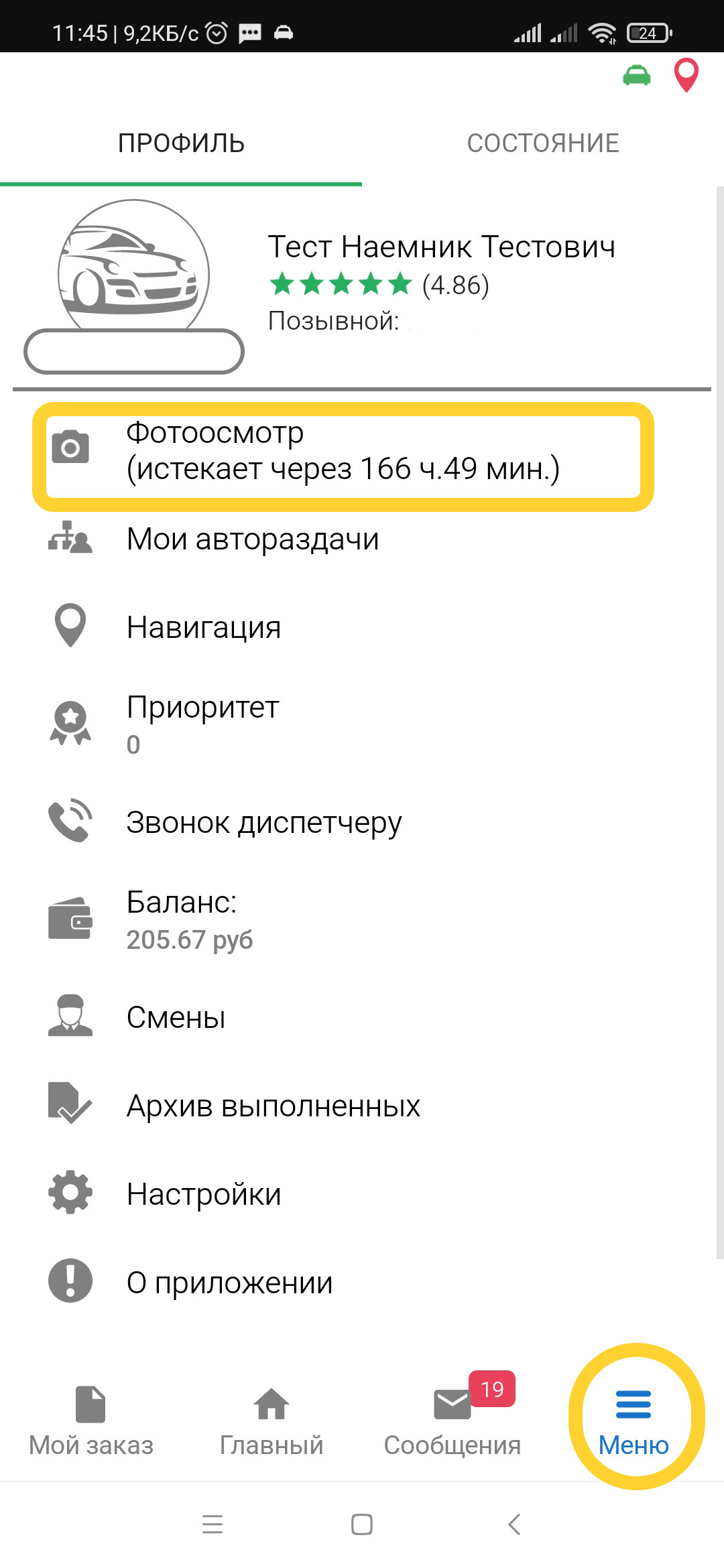 4. Узнать время прохождения седующего фотоосомотра можно в Меню > Фотоосмотр.
