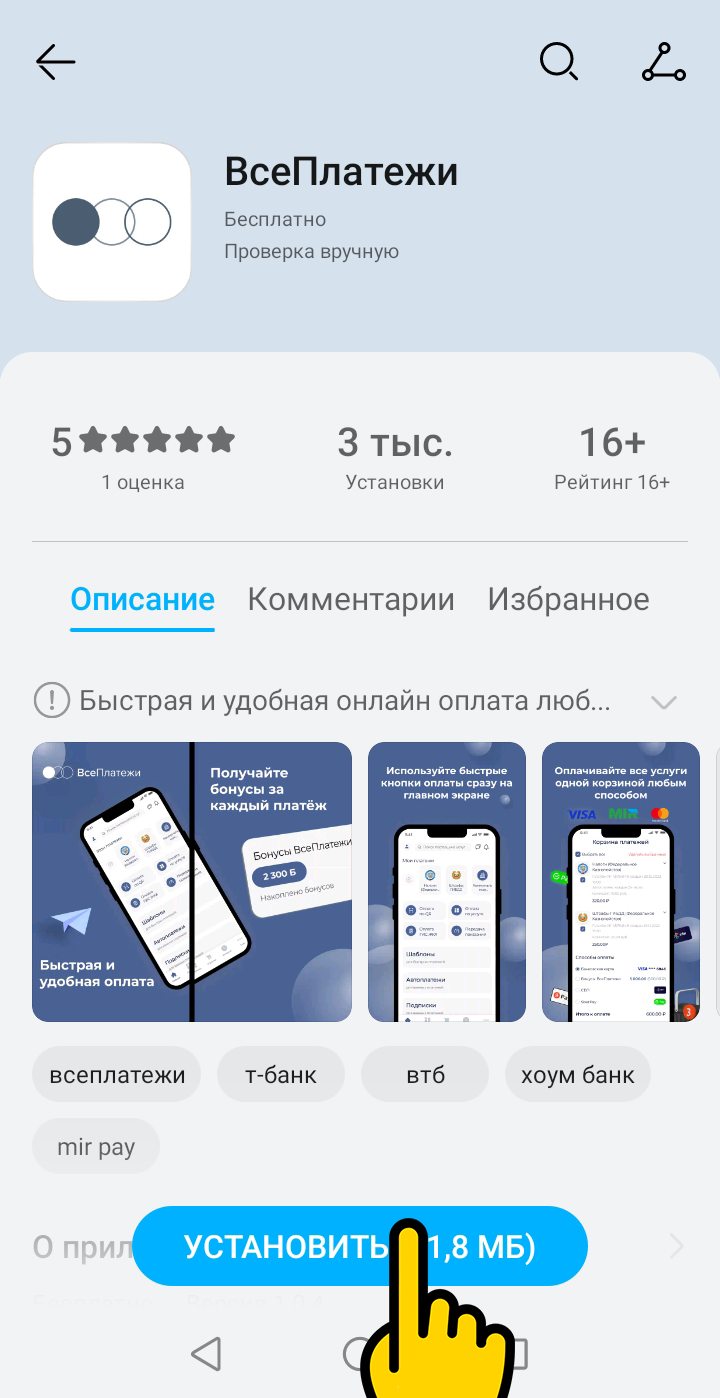 1. Запустите магазин приложения вашего телефона (AppStore, Google Play, Huawei AppGallery). Найдите и установите приложение PayBerry как показано на рисунке