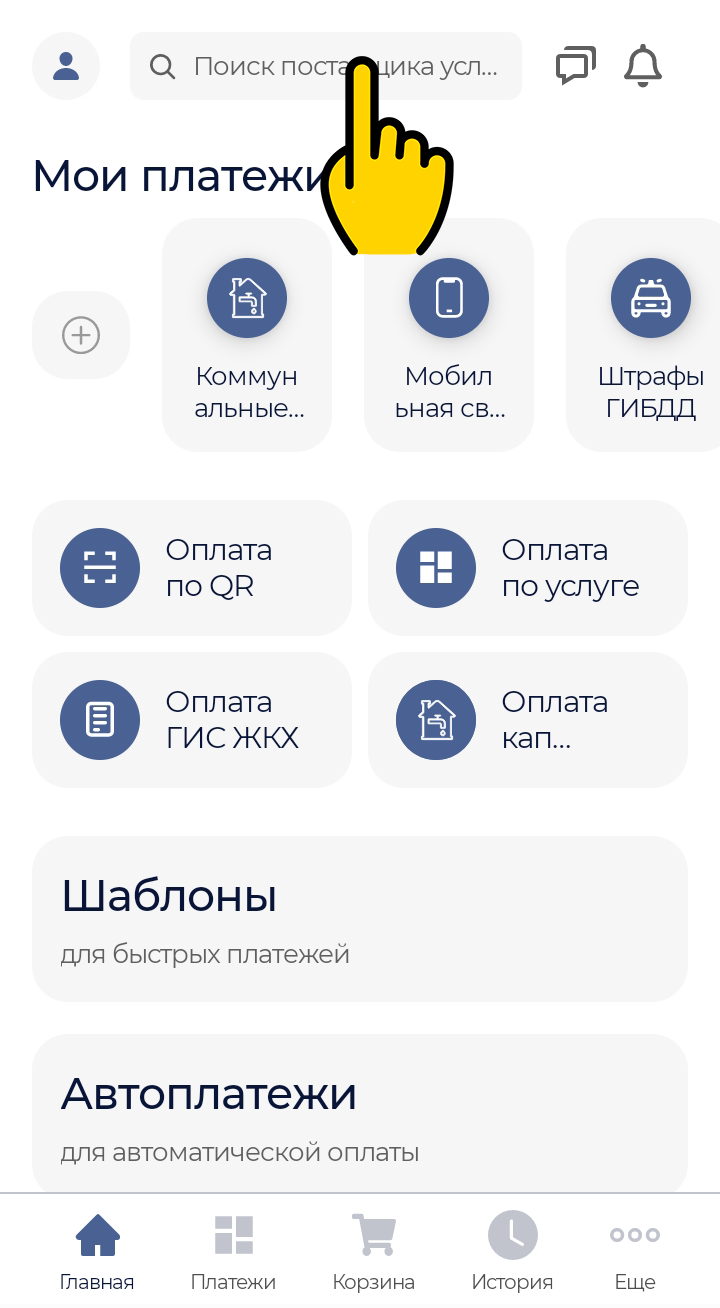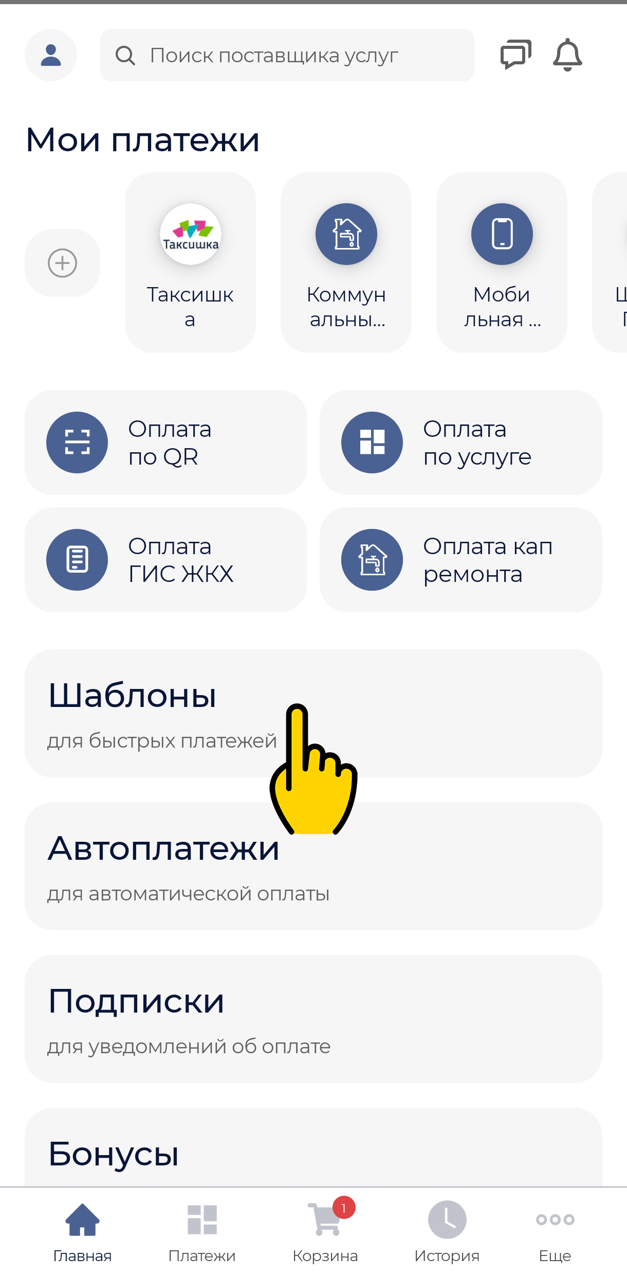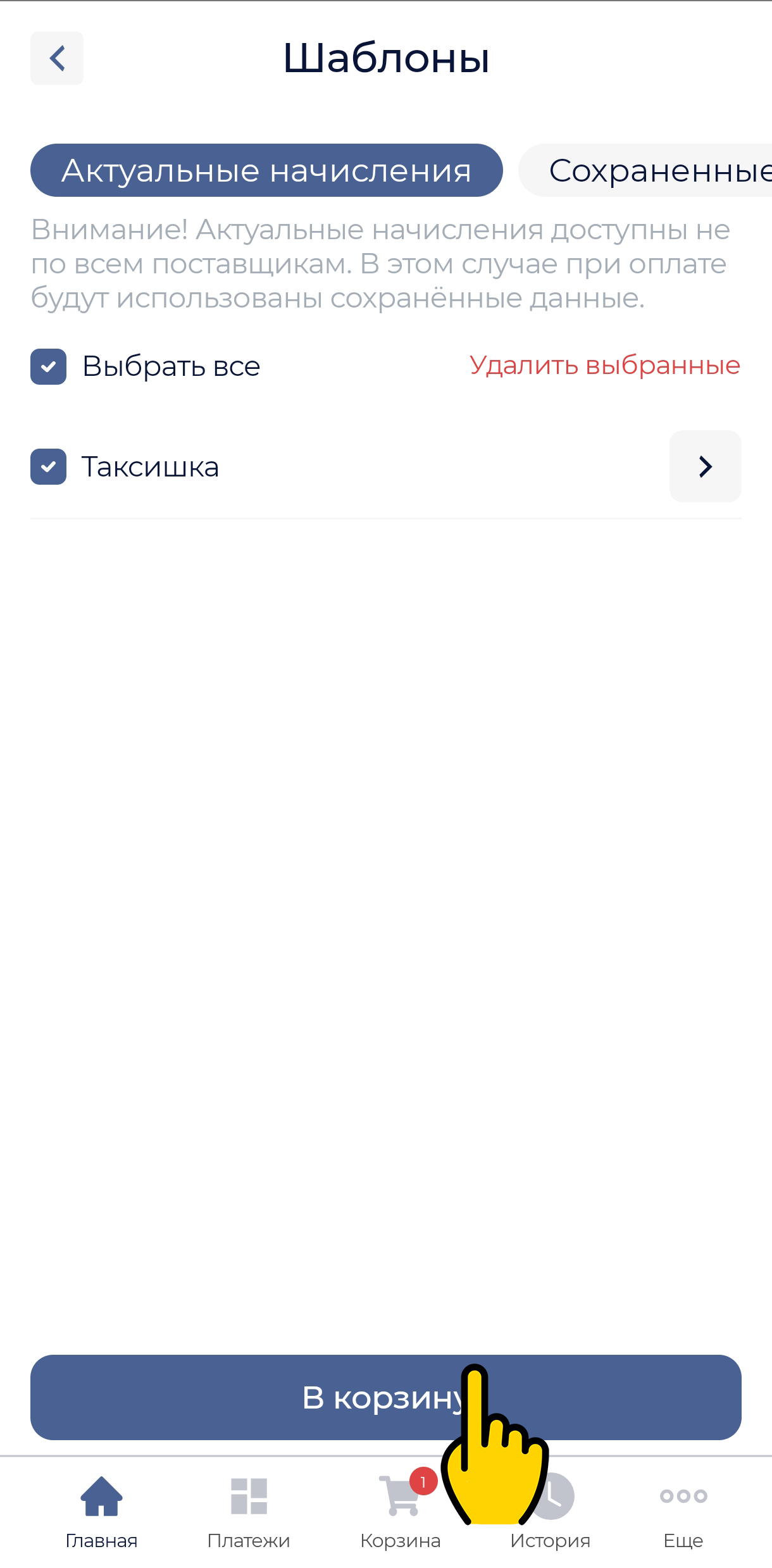 10. Если вы добавили платёж в раздел "Шаблоны" (шаг 7), теперь вы можете платить без ввода реквизитов.