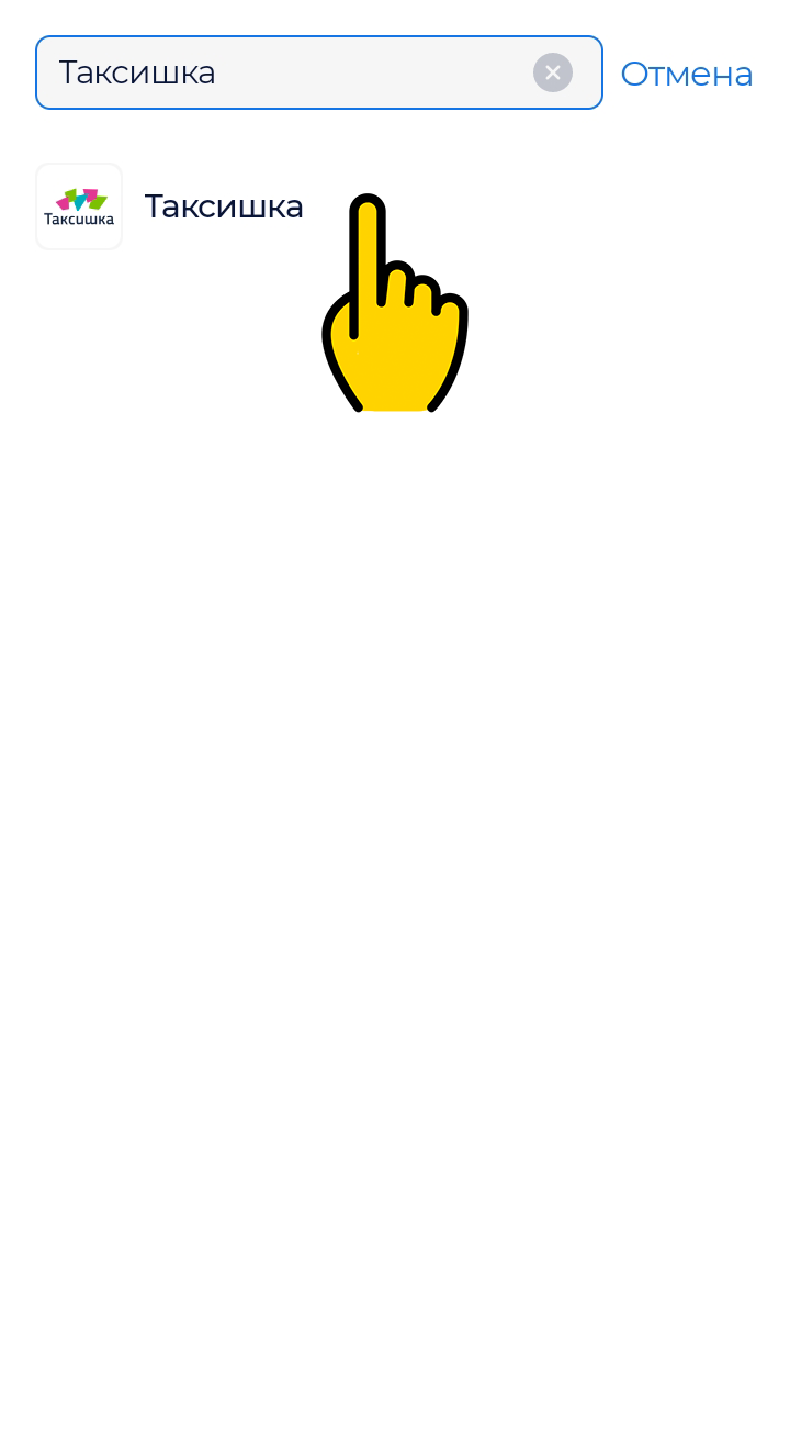 5. Запустите приложение ВсеПлатежи, наберите в поисковой строке "Таксишка" и выбирите соостветсвуйщий пункт из результата поиска.