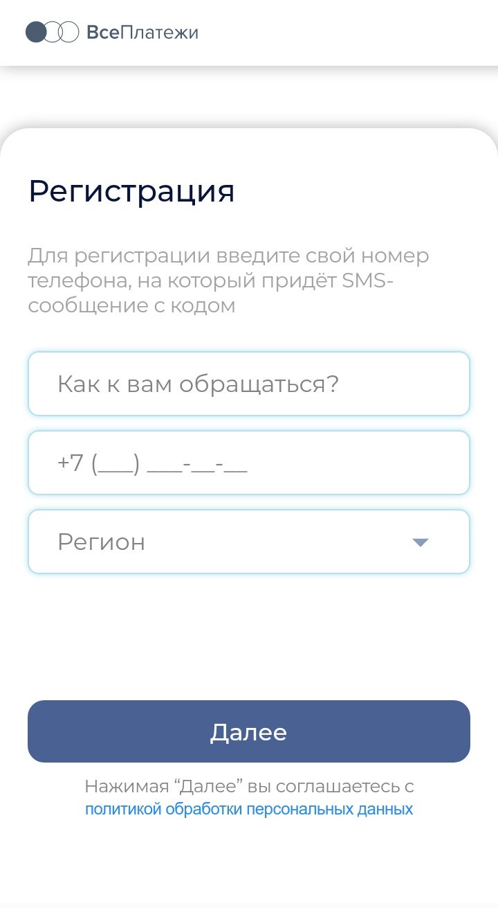 2. Запустите приложение ВсеПлатежи и нажмите кнопку "Войти".