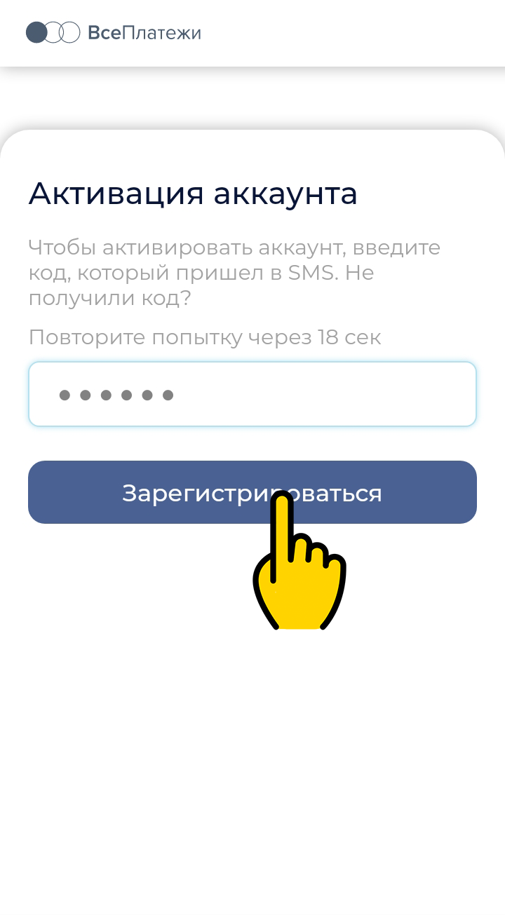 4. Теперь подтвердите регистрацию указав проверочный код полученный в SMS на номер, который вы указали в шаге 3.
